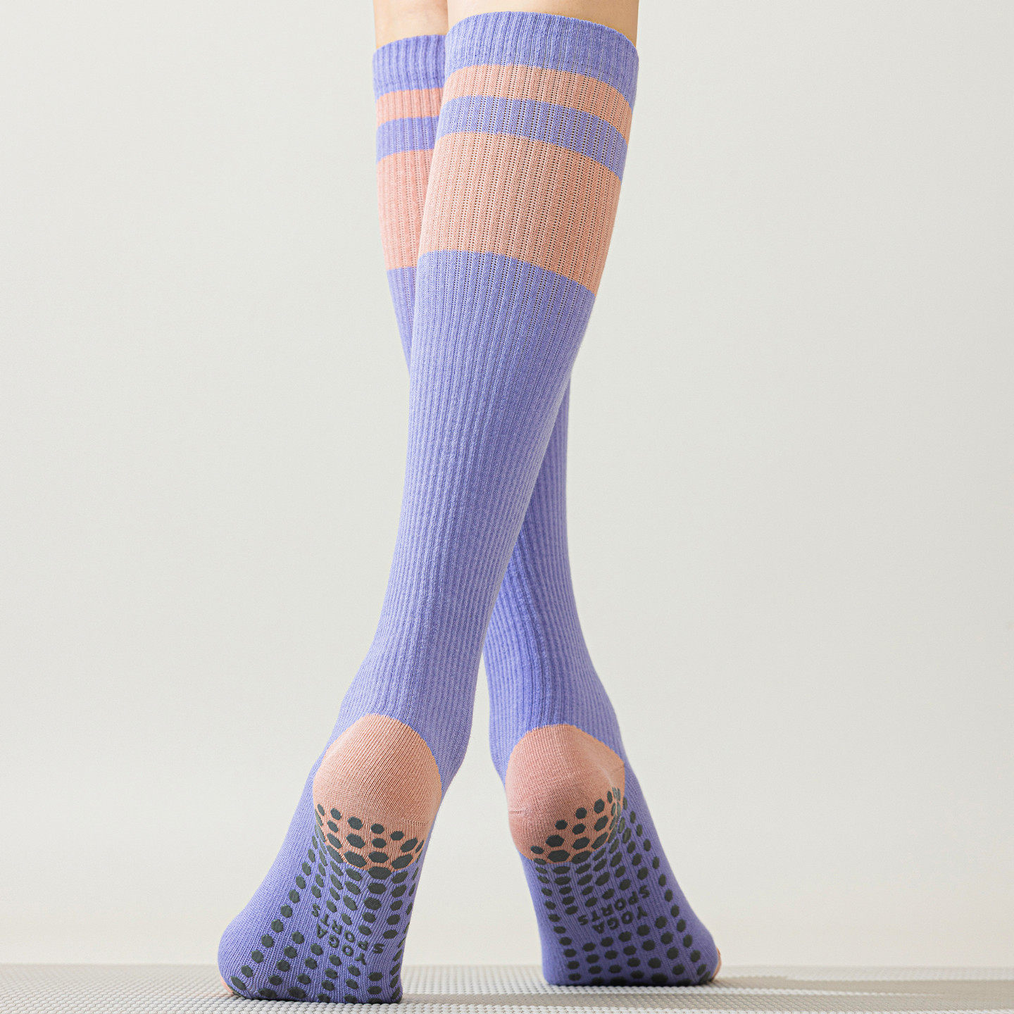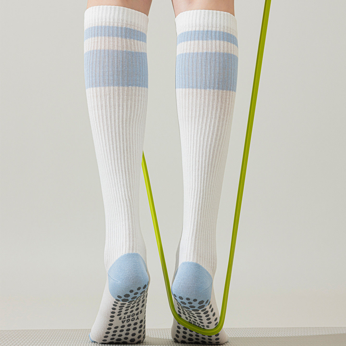 Designed for controlled floor exercises, these non-slip socks support women during pilates, yoga, and other indoor workouts. The split-toe feature encourages better balance and toe flexibility, while the textured sole enhances grip on wooden or smooth studio surfaces. Mid-calf height offers coverage and support without restricting movement. Lightweight and breathable, they keep feet comfortable and dry during extended sessions. Ideal for professional or home practice, combining stability, flexibility, and a minimalist aesthetic.